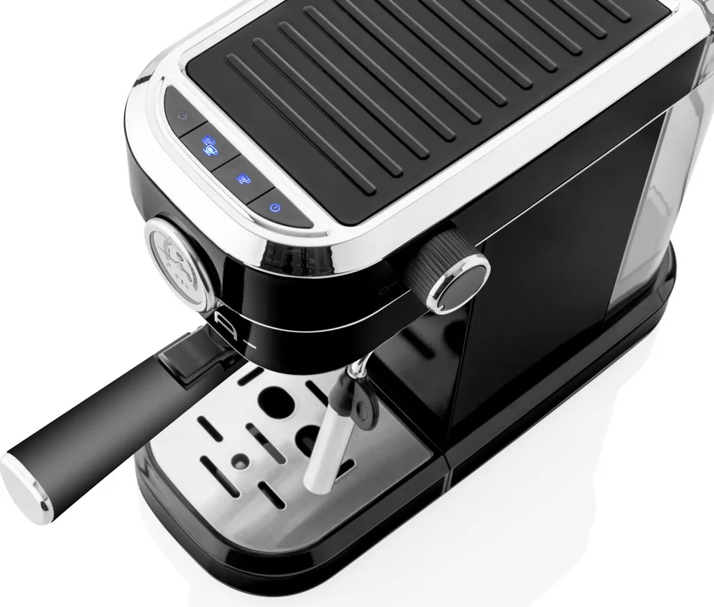 Diese elegante Espressomaschine ist zum Gebrauch mit gemahlenem Kaffee bestimmt. Dank dem Filter mit den Edelstahl-Sieben mit Doppel-Boden und dank dem Pumpendruck bis zu 20 bar wird Ihr Kaffee in köstliches Espresso, wie von einem Barista, verwandelt. Seine finale Form können Sie mithilfe der Heißwasser Funktion sog. Verlängern oder mithilfe der Dampfdüse für feinen Milchschaum verfeinern – gönnen Sie sich Cappuccino oder Kaffee Latte.