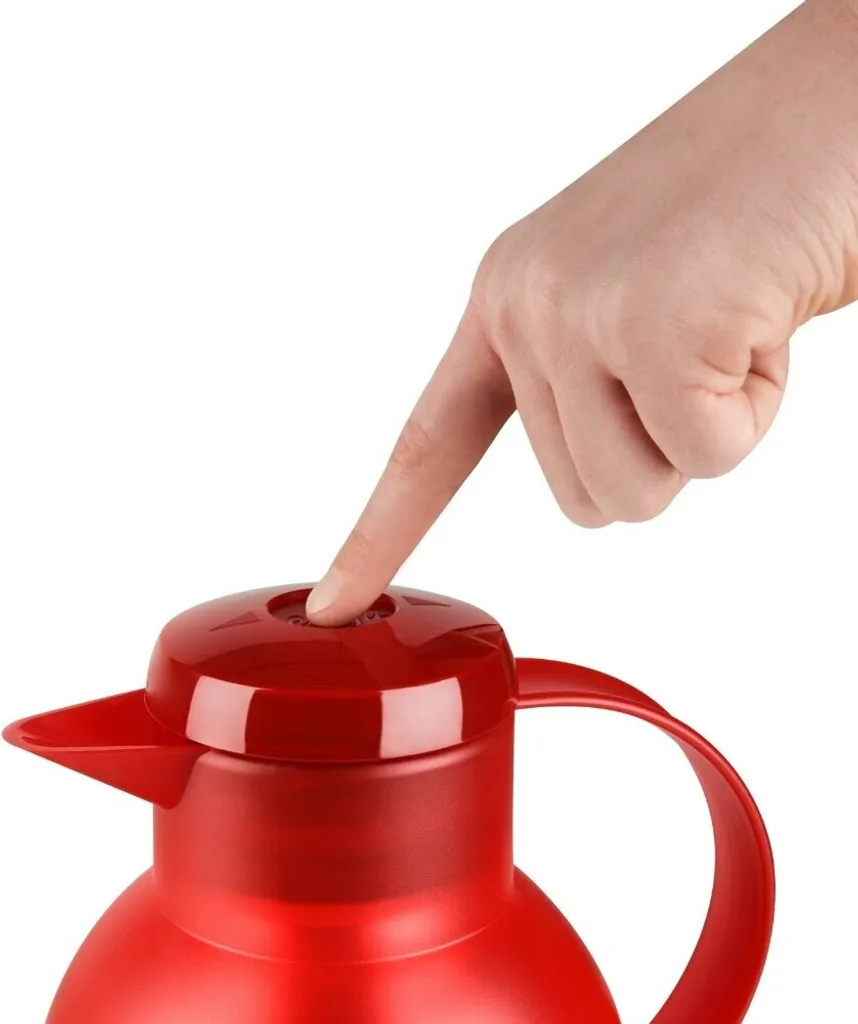 – ProAroma Serie – 10-15 Tassen Kapazität – optimale Abstimmung von Brühtemperatur und Durchlaufgeschwindigkeit – Glaskanne & Schwenkfilter – Thermoskanne Samba von Emsa als e Beigabe – Kanne mit Quick Press – einfach per Knopfdruck öffnen – 100% Dichtigkeit, robuste Oberfläche, Farbe: rot/transluzent
