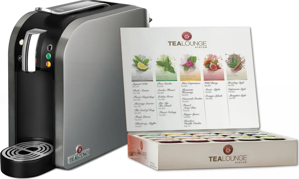 Die neuartige Maschine des TEEKANNE TEALOUNGE Systems wurde speziell von den Experten von Teekanne, K-fee und einem führenden Schweizer Maschinenhersteller für die Zubereitung von Tee entwickelt.